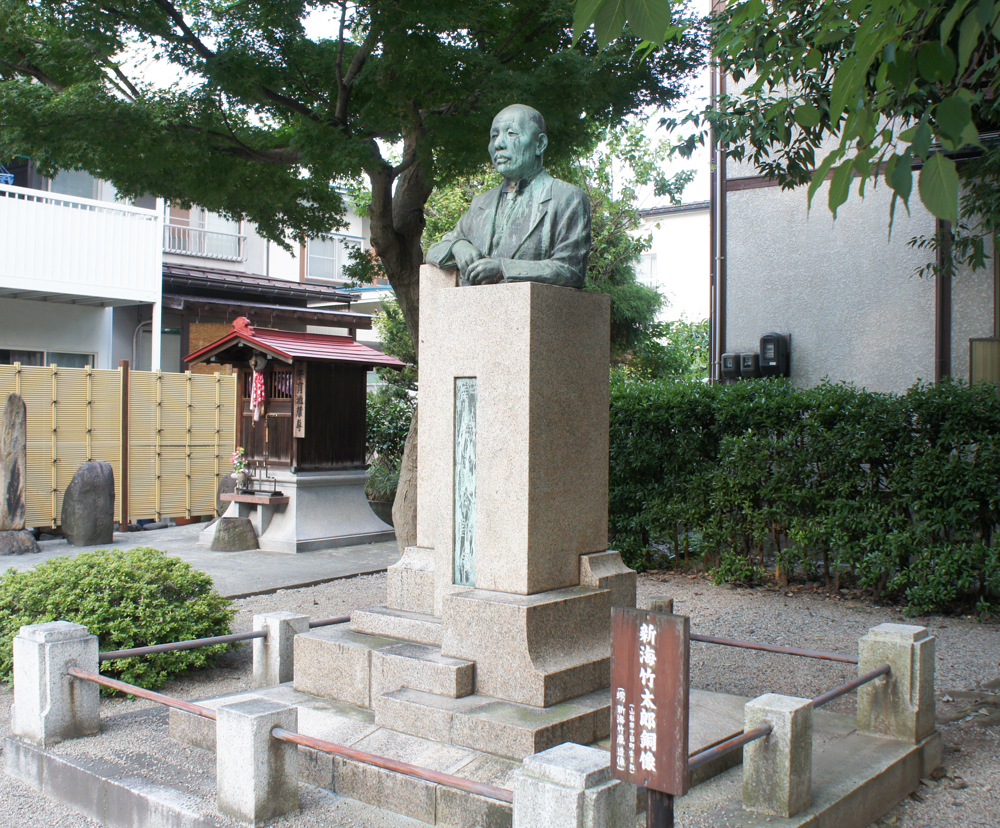 十日町生まれの著名な彫刻家、新海竹太郎氏の銅像です。竹太郎氏の甥の新海竹蔵氏によって制作されました。新海竹太郎氏の作品は当神社にも多数の所蔵がございます。
