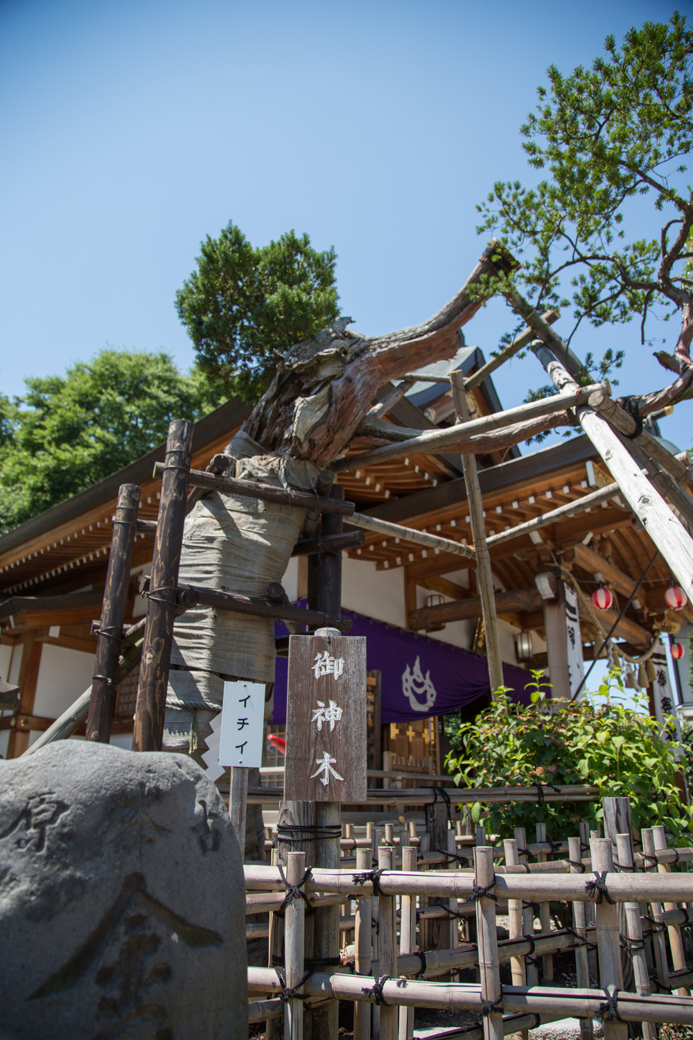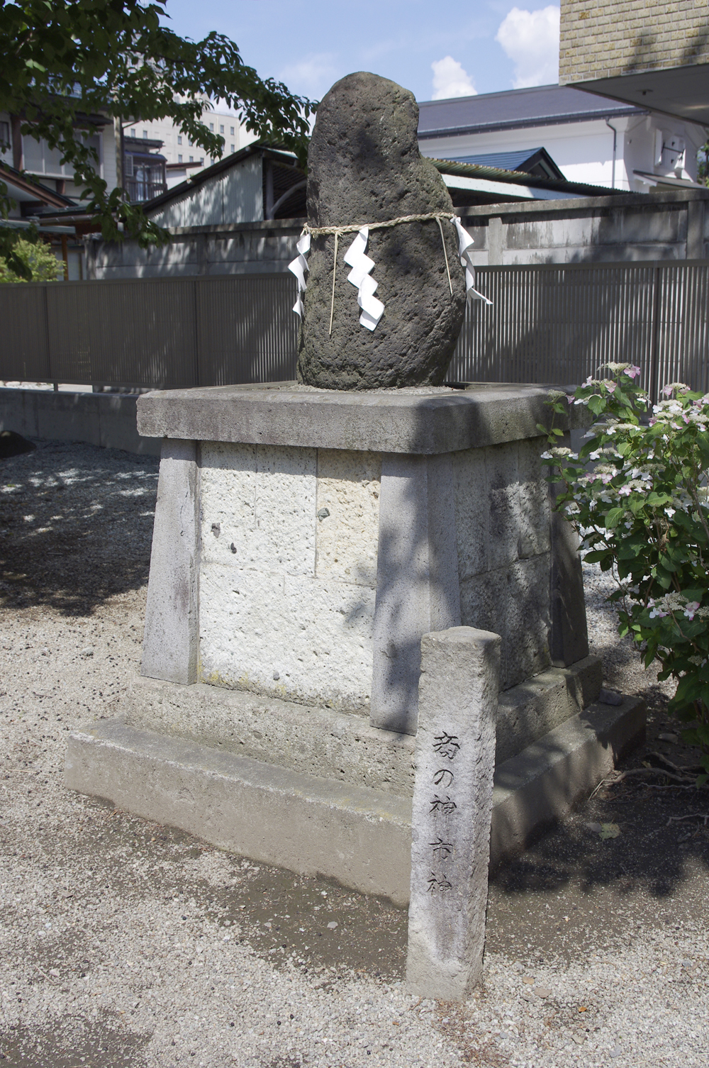 市神様は商いの神様として厚い信仰を集めております。十日町の町名の由来となった十日市の場を示す碑として、現在のやまぎんカードサービス付近の路上にお祀りされていましたが、明治初期の道路拡張に伴って市内の湯殿山神社に移されました。 しかし、その後も十日市跡地への参拝者が後を絶たず、もとの場所付近に新たに市神様の碑がお祀りされ、戦後に当神社境内に移されて現在に至っております。 このような縁起により毎年1月10日の初市は、十日市跡碑前と当神社市神様にて祭典を斎行してから開催されています。